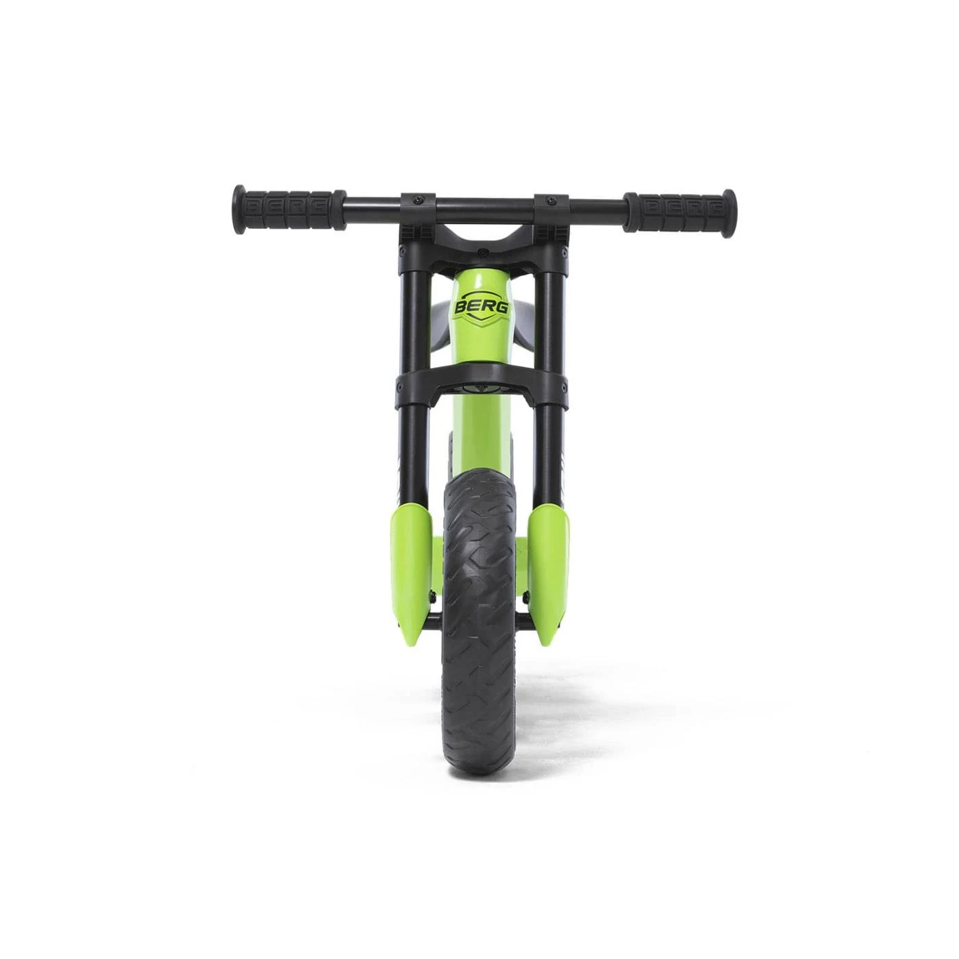 El correpasillos BERG BIKY Mini Green está fabricado con un cuadro de magnesio de color verde, extra fuerte y muy ligero para que no les cueste desplazarlo. No tiene pedales, pero sí un asiento ajustable en altura a un mínimo de 29.5 cm y un máximo de 42.5 cm. También dispone de un reposapiés empotrado en el cuadro con superficie antideslizante. Al disponer de reposapiés favorece que los niños practiquen su equilibrio y se atrevan a correr con solo las dos ruedas, sin poner los pies en el suelo.