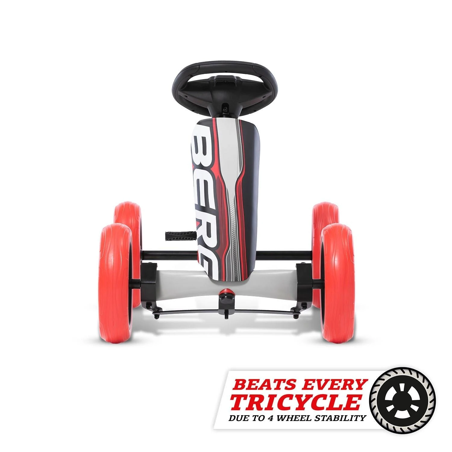 The BERG Buzzy Beatz is music to your ears, literally. With a sound bar built into the ergonomic handlebars, you can record and play 30 secs of your favourite music OR your voice! The tough bonnet, robust frame and fast racing tyres makes pedalling a lot easier. It will feel like you’re flying above the path and it goes backwards just as fast! Unlike a tricycle, Buzzy’s pedals are operated separately from the steering wheel, so children are always in control of both the steering wheel and the pedals. This makes riding easier and more stable. The seat can be adjusted to 3 different positions, making sure its always the perfect fit as your children grow.