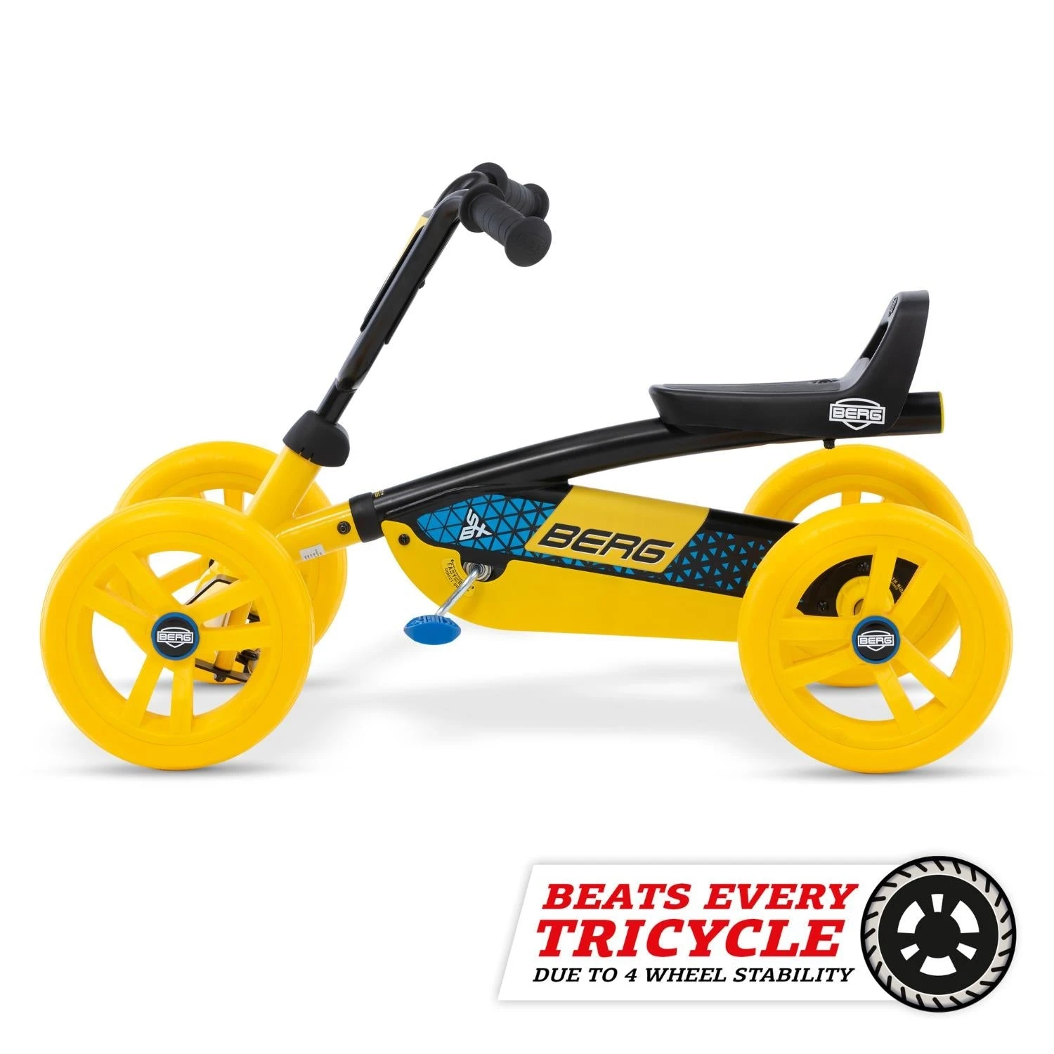 Just imagine your child building their confidence on this yellow BSX sensation! This cool Buzzy BSX is super stable & your feet remain firmly on the pedals even going round the tightest corners. Pedal forwards, backwards and brake within a few seconds, the BERG Buzzy seat is adjustable so it grows with you, providing fun for years to come.