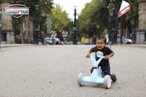 El desarrollo de tu hijo empieza en un BERG GO². El BERG GO² es tu coche de pedales pulcro y ergonómico para los niños más pequeños. En la primera etapa, el BERG GO² es para niños de 10 meses para que empiecen a aprender a andar con un correpasillos. Los pedales tendrán que estar plegados para que no molesten al andar encima del vehículo. Antes que te percates tu hijo estará andando por toda la casa. Una vez el niño ya tenga la primera fase dominada, será hora de desplegar los pedales para que le puedas enseñar a conducir un coche de pedales por primera vez.