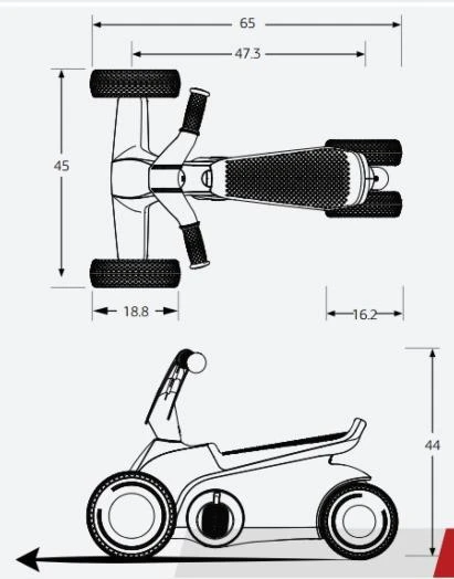 Medidas BERG GO²: 65 cm (largo)x 45 cm (ancho) x 44 cm (alto) Caja de 58 x 38 x 26 cm Peso neto: 3,85 kg Peso bruto: 5 kg Peso máximo recomendado del usuario 20 kg Altura mínima usuario: 70 cm Altura máxima usuario: 100 cm.textseo a, .textseo a.enllacseo, a.enllacseo{font-family:”Opensans-Regular”, sans-serif!important; color:#454545!important;}
