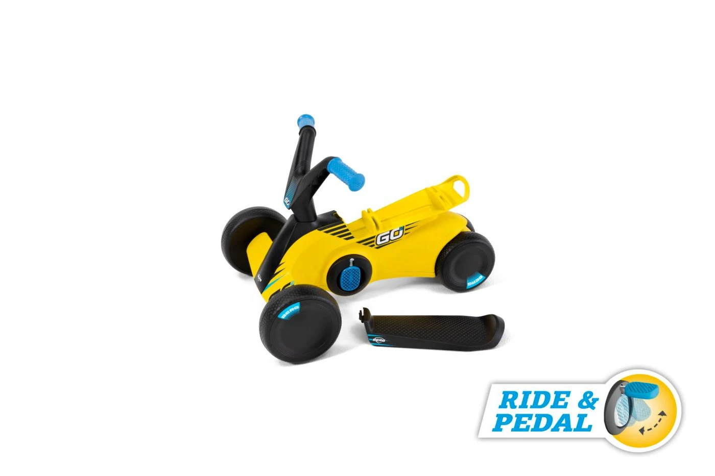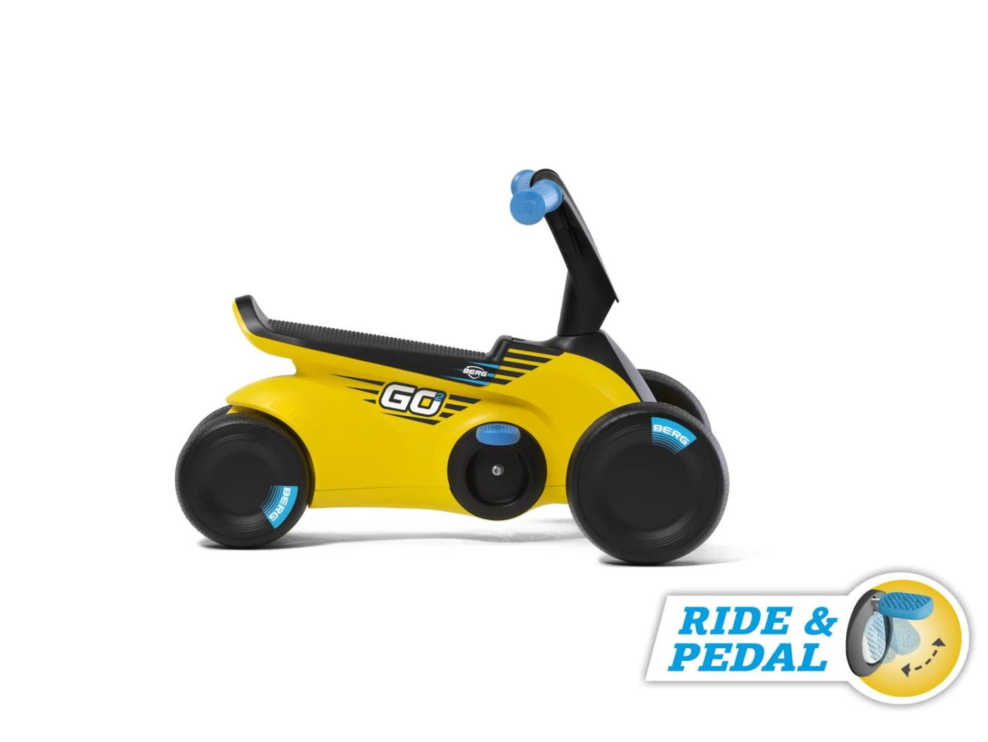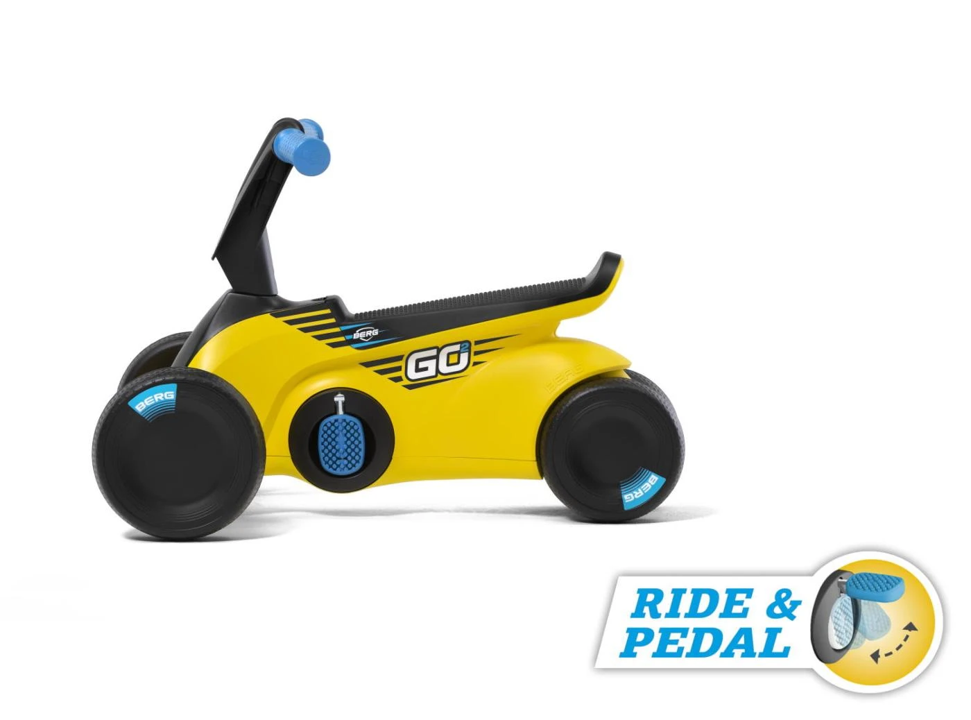 BERG GO² es un correpasillos y un coche de pedales, 2 en 1. Aprende a andar en un correpasillos y cuando seas mayor, aprende a pedalear con el mismo vehículo.