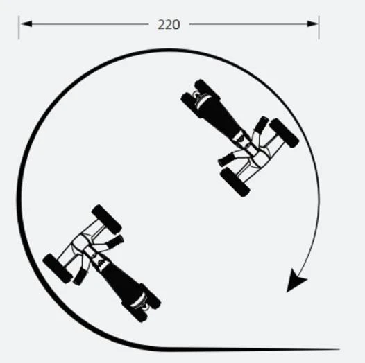 El diseño innovador del BERG GO² tiene las ruedas traseras juntas para que al andar con el correpasillos no molesten a los pies. El asiento, largo e inclinado se adapta a la altura del conductor sin necesidad de ajustar el manillar ni el propio asiento.