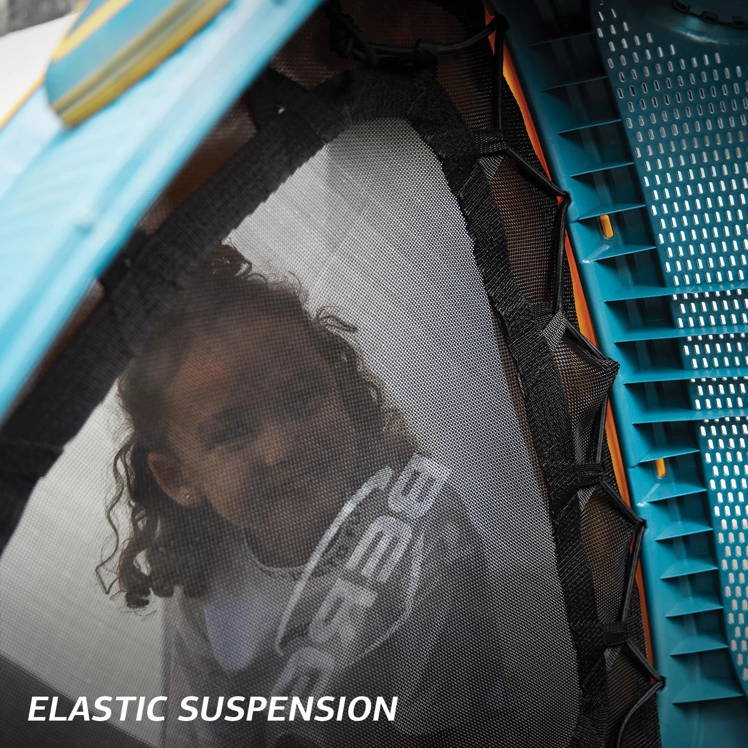 - The nice jumping mat hangs in supple, elastic springs. So it hardly takes any strength for you to jump and tumble, on your legs or your buttom.
