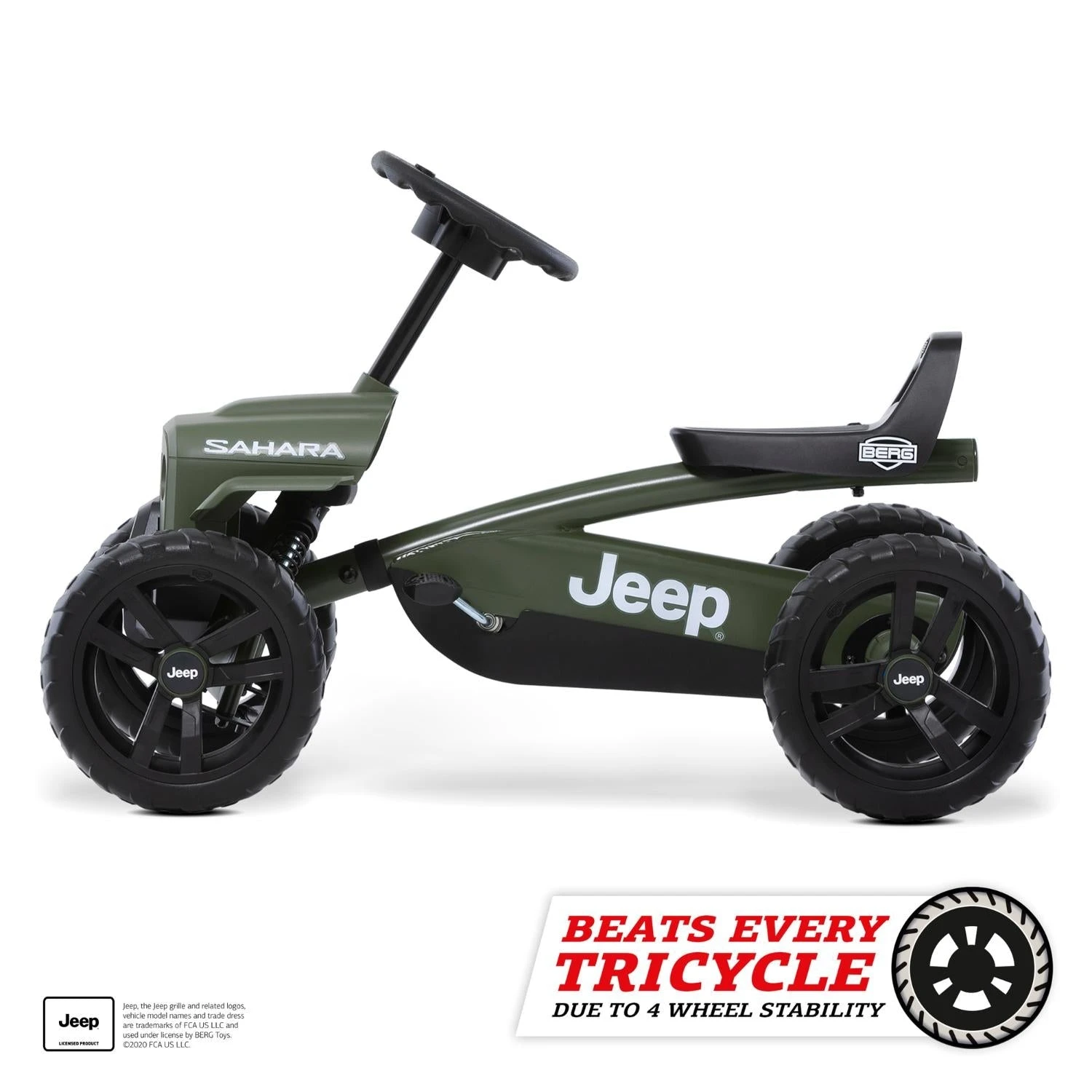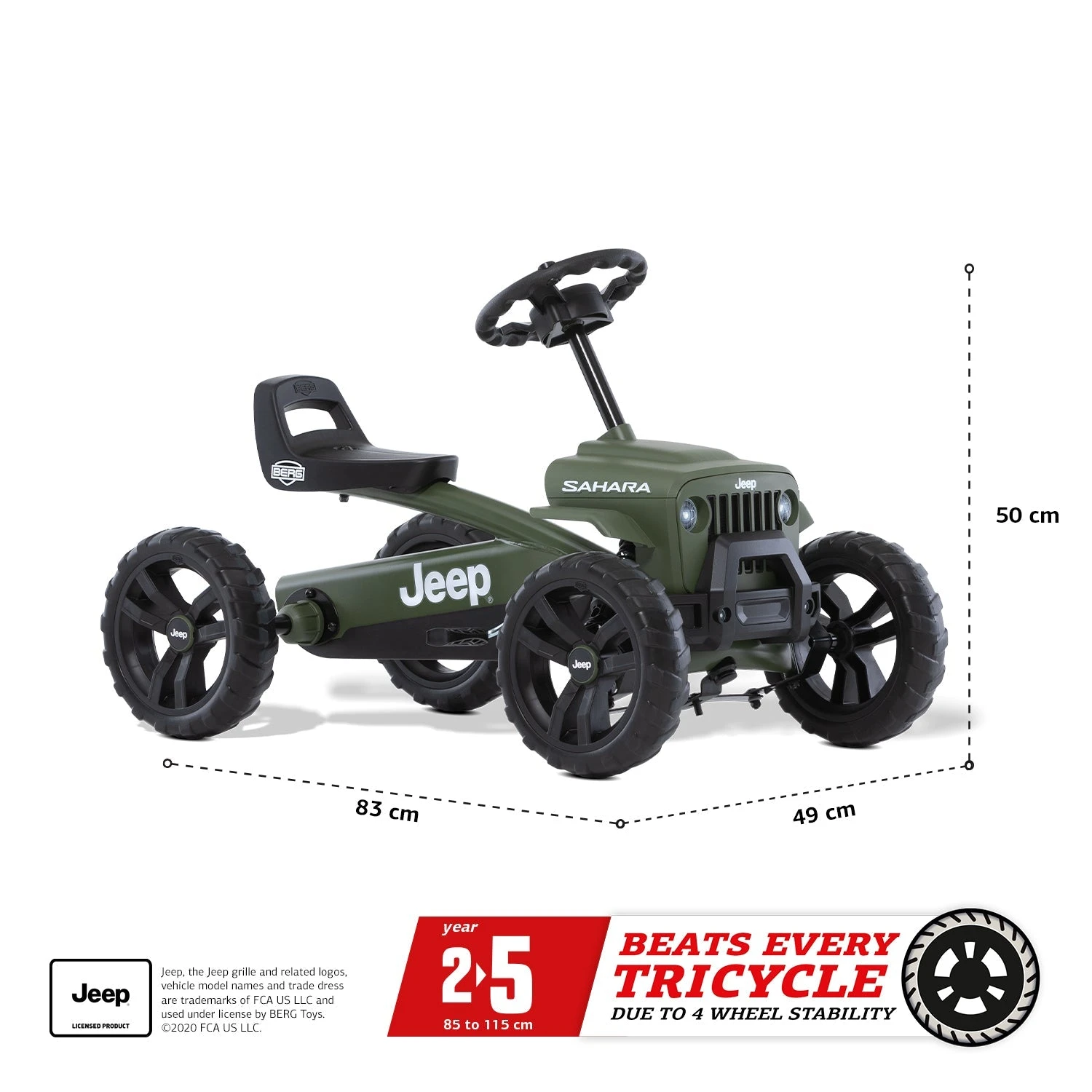 With its Jeep grill, solid hood, unique steering wheel and off-road tyres, this Jeep Buzzy Sahara offers unforgettable driving pleasure. On this Jeep your child can tackle any terrain, the direct drive system makes pedalling super light and they can go on adventures effortlessly! The Jeep Buzzy Sahara’s four EVA tyres keep the go-kart firmly on the ground. Your child will feel secure and ride in comfort as you adjust the seat and steering as they grow.