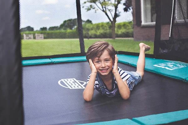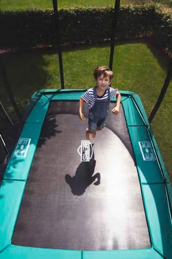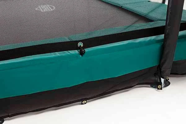 Inground con red de seguridad Deluxe. Este modelo de cama elástica para enterrar Inground requiere hacer un agujero en tu jardín y la estructura quedará por encima de la superficie, ocupando unos 20 cm. A esta estructura se acopla la red Deluxe para unos saltos aún más seguros.