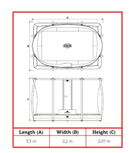 Postes curvados. Los postes de las redes de seguridad Deluxe y Deluxe XL tienen los postes curvados hacia el exterior. Esta particularidad aporta a la cama elástica una mayor estabilidad a la estructura además de ofrecer una sensación de más espacio desde dentro la cama elástica. Los postes están protegidos con espuma de seguridad ante posibles golpes y acabados con una funda protectora negra para que la espuma no se deteriore con el sol. Los tapones de los extremos superiores rematarán el poste y sujetarán la anilla de la red de seguridad.
