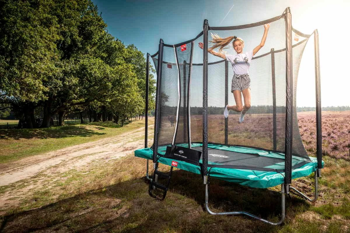 Lona de salto muy resistente. Las camas elásticas BERG Favorit tienen un lona de salto muy resistente y que en los modelos más grandes llega a soportar 600 kg. Una garantía de saltos seguros y para todas las edades.