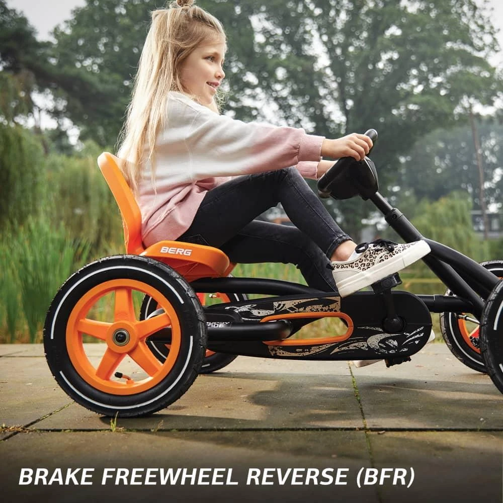 El coche de pedales Buddy Prof de la marca holandesa BERG TOYS tiene el sistema BFR, es un sistema intuitivo para niños, sólo accionando los pedales puede ir marcha adelante, marcha atrás, piñón libre y frenar.
