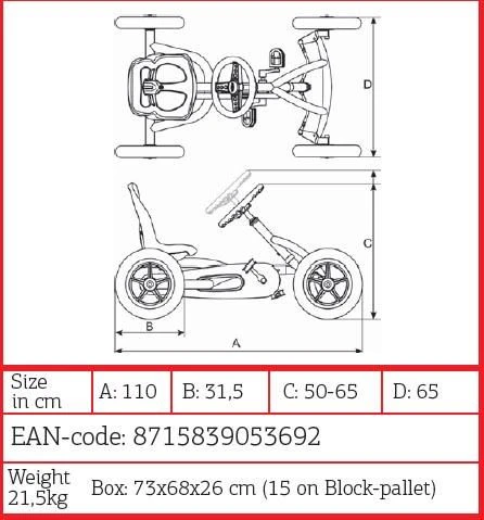 Medidas kart: 110 cm (largo)x 65 cm (ancho)x 50-65 cm (alto)