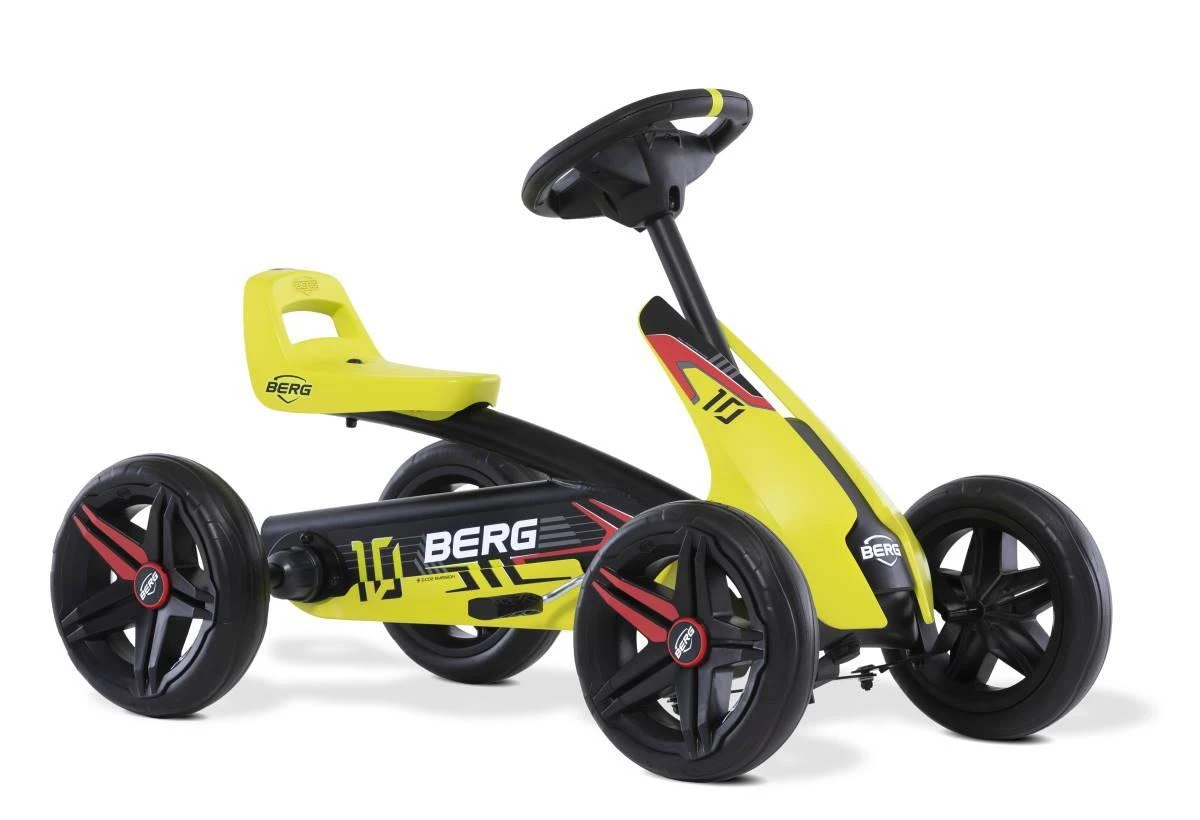 El coche de pedales Buzzy AERO  es un coche de pedales que es ligero y con un manillar parecido a los que llevan los triciclos pero es mucho más estable para que los niños se mantengan siempre seguros encima del cuadriciclo. Incluso en las curvas más cerradas los conductores quedarán pegados a los pedales.  El coche de pedales Buzzy AERO es ideal para empezar ya que es adecuado para niños de 2 años. Aprende a pedalear con el BERG Buzzy AERO. El modelo BERG Buzzy AERO tiene unos colores deportivos con combinación de verde, rojo y negro.