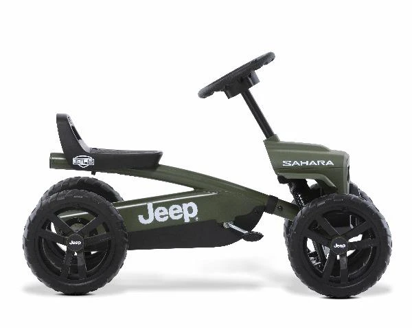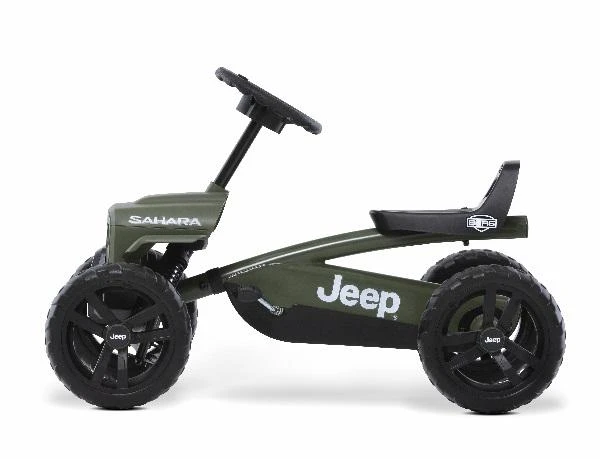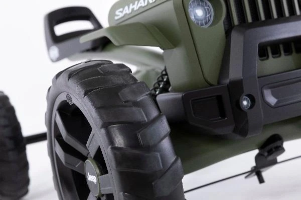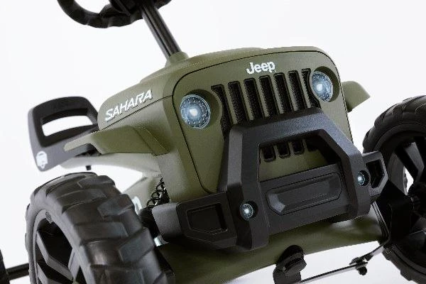 Aventúrate con el kart de pedales JEEP BUZZY SAHARA a recorrer caminos del desierto, atravesar charcos llenos de cocodrilos y cruzar áreas boscosas desconocidas.