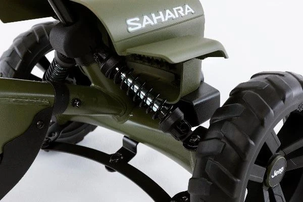 El coche de pedales JEEP Buzzy Sahara tiene su parrilla Jeep, el capó sólido, un volante único y llantas de todo terreno. El placer de conducir un Jeep Buzzy Sahara es inolvidable , los niños podrán abordar cualquier terreno y gracias al sistema de accionamiento directo (piñón fijo) podrán hacer un pedaleo suave y ligero. Este puede ser un coche de pedales para aprender a pedalear ya que es para niños de 2 a 5 años.